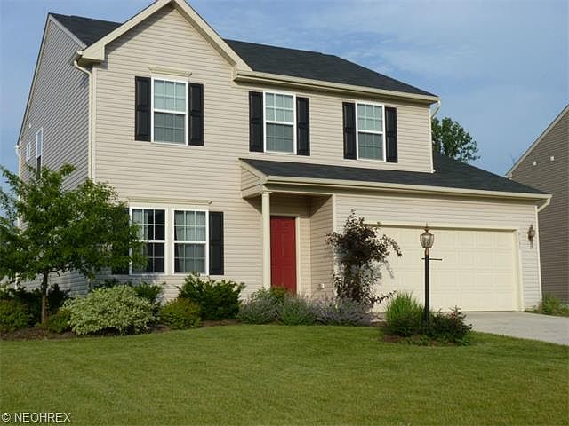 This 3 bedroom, 3 bath Colonial with second floor loft/exercise area (could be converted to a 4th bedroom) is located in Shale Creek with backyard views of the course and pond! Modern/neutral decor throughout with a beautiful kitchen boasting 42" maple cabinets, an upgraded island area and spacious morning room! All kitchen appliances and washer/dryer stay! Step out through the slider to a beautiful, almost 500 sq foot custom stamped patio, stamped stairs, and built-in fire pit! Much attention was given to the nice landscaping, and the custom trellis at the side of the home stays too! Also on the first floor, is a spacious family room, laundry, 1/2 bath and dining room area (currently used as office). Upstairs, the over-sized master bedroom boasts a spacious walk-in closet, master bath with garden tub and extra storage closet! Two additional bedrooms are a nice size and the loft area has cable/internet. A full basement, garage with 20amp circuit and drain, and a security system are also nice features of this home. Sellers are offering a one-year home warranty! Shale Creek offers clubhouse, fitness center, swimming pool and access to golf packages.