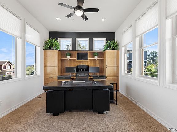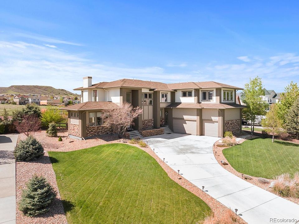 Welcome home! This spacious 7-bedroom, 6-bathroom home boasts of stunning mountain views and a serene open space setting. As you step inside, you're greeted by a beautiful formal entry with a vaulted ceiling and hardwood floors. The entryway opens up to the formal living room, featuring a cozy fireplace and dining room, perfect for entertaining guests. Just off the entry, you'll find a convenient powder bath and a private office with French doors and built-in cabinetry, providing a quiet and productive workspace. The updated gourmet kitchen is a chef's dream, equipped with stainless steel appliances, granite countertops, seamlessly flowing into the family room, where another fireplace awaits. This great room offers breathtaking views of the outdoors and direct access to the backyard. Make your way up one of the two staircases. Through the double doors, you'll discover the master suite. With its own mountain views of Mt. Evans, the master suite features an en-suite bath, a double-sided fireplace, and a large walk-in closet. Additional bedrooms upstairs all with mountain views, providing ample space for family and guests. The finished basement adds even more versatility to this home, offering two more bedrooms with a 3/4 bathroom, a game room (stubbed in for a kitchen/bar), two storage rooms, and a family room with yet another fireplace. Step outside and enjoy the private backyard, where you can relax in the hot tub while taking in the surrounding natural beauty of the open space behind the property. Two stunning pergolas with outdoor lighting, island gas grill with refrigerator, bar and lounge area. A true backyard oasis. The oversized garage is a dream, with high ceilings, an access door, heater unit, workbench/tool storage area, and professionally coated floors. With its impressive features, spacious layout, and picturesque mountain views, this home offers a truly exceptional living experience.
