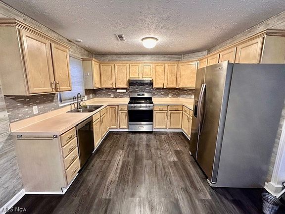 Incredible completely remodeled like- new nearly 1400 square-foot ranch situated on a fantastic park like half acre setting that backs up to a horse pasture. Spacious Eat-in kitchen featuring stainless steel appliances, an abundance of cabinetry, mosaic tile backsplash, shiplap paneling and offers a large dining area. The Great room has vaulted ceilings and handcrafted stone gas fireplace. Flex space off the back of the home could be used as a Family/Sun Rm or Office and walks out to a large concrete patio with privacy fence and leads to the huge backyard with Shed. There are two spacious bedrooms, and a gorgeous, completely remodeled glamour bathroom with a brand new double vanity, ceramic tiled shower and soaking tub. The appliances are also included, the washer and dryer are combined into one unit. The entire house has been freshly painted and has newer, light fixtures, doors, hardware, and beautiful LVT flooring and carpeting throughout. This home is a charmer, and is a must see!