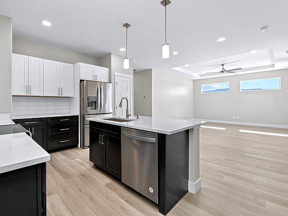 New construction home backing to the Colorado Riverfront Trail with no rear neighbors. Ranch home with 3 beds, 2 baths, 1459 sq/ft, and nicer finishes. Enjoy the open floor plan, 9’ ceilings with tray in living room, central AC, LVP flooring, and an abundance of can lights. The kitchen includes stainless steel appliances, quartz countertops, pantry, and cabinets with dovetail constructions and soft close hinges. The primary suite is fitted with a 4-piece bathroom including a fully tiled shower, dual vanity, and large walk-in closet. Outside enjoy the covered patio, fenced backyard, front landscaping with automatic sprinklers, stucco siding, and a 2-car garage. River Walk subdivision features riverfront trail access & 2 loop lane parks.