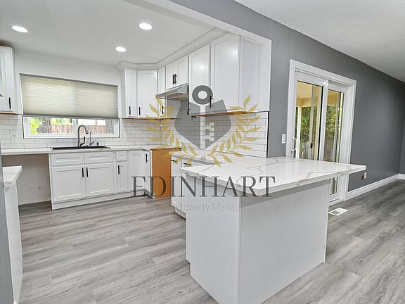 This beautifully updated 3-bedroom, 2-bathroom home features a clean, modern design with fresh paint, sleek plank flooring, and a thoughtfully upgraded kitchen. You'll love the crisp white cabinetry, quartz countertops, classic subway tile backsplash, and included refrigerator, all coming together for a streamlined, polished look. The spacious backyard is a true highlight, with mature trees, curved brick borders, and a large patio area, perfect for relaxing or enjoying the outdoors. It's low-maintenance and private, with landscaping service included. Washer and dryer hookups are available (washer/dryer not included). One-year lease required. No pets allowed. Renter's insurance is also required. Range and dishwasher will be installed prior to move in.