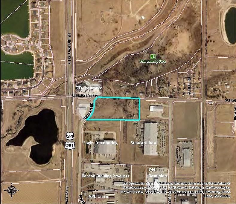 Development opportunity! Corner lot with 8.59 acres +/- in prime location next to Platte Valley Industrial Park. Close proximity to Interstate 80, Highways 281 and 34, and rail lines. Paved roads on the North and West sides of property and utility ready. House and outbuildings are being sold with the property.