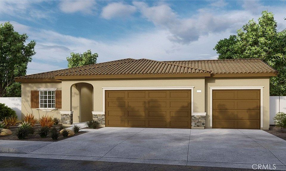 NEW CONSTRUCTION in Winchester - This lovely 1898 square foot California Tuscan façade SINGLE-STORY home offers a WIDE entryway to the open concept Great room and Dining area with vaulted ceilings. The ISLAND kitchen has a breakfast bar, QUARTZ counter tops, stainless steel appliances, and pantry closet. All four bedrooms are generously sized, the ensuite has a large walk-in closet, and the laundry room is conveniently located just off the main hallway. There is Smoke stained maple shaker-style cabinetry and vinyl and carpet flooring throughout, and this home includes a direct-access 3-car garage pre-plumbed for an electric car! This truly modern home has all the SmartHome features you would expect and, is FULLY LANDSCAPED AND IRRIGATED in the front yard. Homeowners will also enjoy easy access to nearby shopping, dining, and entertainment. We anticipate an end of February 2024 move-in and we can't wait to WELCOME you HOME!