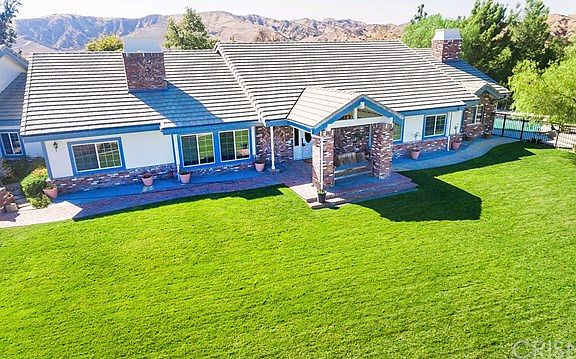 COMING SOON! BEAUTIFUL 5 Acre, View Property with 5 Bedrooms, 4 Bathrooms and a 3 Car Garage. This home has 4,405 sqft of living space and features a Great Room, Chef’s Kitchen with Stainless Steel Appliances, 3 Fireplaces, Pool & Spa with enormous Patio Space for hosting the largest of gatherings. Gated Entry to the Property with a Concrete Driveway that allows vehicle access down to Horse Stalls. Property is private and secluded yet just a couple minutes drive down to the City and Castaic Lake. This home is set up nicely for a multi-generational family.