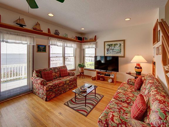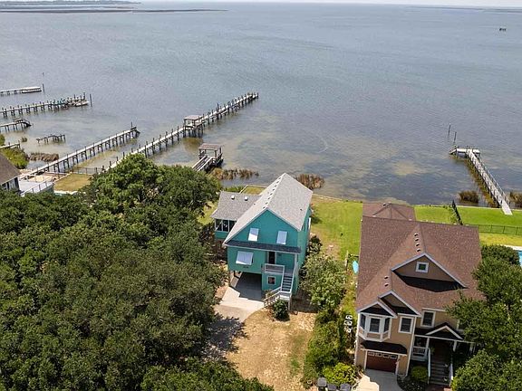 Bay Drive Soundfront in a "sought after" area. Beautiful, unobstructed sound views with some of the best sunsets. Well maintained second home. Many improvements over recent years: roof, exterior and interior paint, kitchen appliances, granite countertops, bulkhead,termite treatment in 2022. Hardwood floors on first level. Wall of windows in great room. 1 bedroom, and 1 full bath on first level; 3 bedrooms and 1 bath on second level.  Enjoy the water views in the large second level main bedroom with a sitting area. Bike, run, or walk along the Multi- use path on Bay Drive and beyond. Wildlife boat ramp close by. You can even get to the grocery stores, shopping center and Lowe's without getting into traffic.  Blueprint plans were drawn to add a 5th bedroom, bath, and porch. Plans are on the kitchen bar.  Town Public access on the south side.