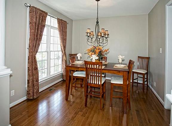 One owner, 4 bedroom, 2 and a half bath Tomac home with a terrific floor plan featuring open flow, and finished third floor. Great features include, low maintenance vinyl siding, fenced in yard, beautiful wood floors throughout the first level, 2 car garage with auto openers, eat in kitchen with breakfast nook, corian counters, gas fireplace and all in this cozy waterfront community. Convenience to shopping and 288. Great schools, Heat pump and both compressors have been replaced and the home is move in ready. Don't miss out on this one.