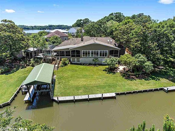 Awake to magnificent colorful sunrises dancing across your view of Fowl River and Mobile Bay. Your mornings can begin with glorious sunrises, coffee on the screened deck and an invigorating dip in your pool, all right outside your bedroom door. This four bedroom, three and a half bath home boasts 250 feet of water front with amazing views and is tucked away in the small neighborhood of Bay Harbour. This coastal cottage foyer welcomes you and your guests with an inlaid navigator's compass, nine and ten foot ceilings, custom moldings, beautiful wood floors, fresh paint and sun filled rooms. The center of the home is an entertaining delight, with an open floor plan that flows from the living and dining areas to the fabulous screened outdoor kitchen and eating area. You can entertain from small intimate dinner parties to large crowds with indoor and outdoor cooks' kitchens and bars. The sunroom affords beautiful views from the floor to ceiling windows that will allow you to enjoy the vast wildlife that make their home in the surrounding area. The pool and hot tub have a pool house bath, complete with an outdoor shower. End the day in your spacious master suite. The spa bath invites you to relax in the soaking tub or refresh in the walk-in shower. Guests have a suite to themselves complete with a private entrance and screened porch. There is a covered boat slip on protected water with a 12,000 pound lift, pier with well water and electricity available at the fish cleaning station. All this surrounded by over 200 feet of bulkhead and guest pier. There is a natural area for launching kayaks, paddle boards, canoes or skiffs. Feel safe during storms with updated construction features which include 140 mph rated Jeld-wen windows and doors, reinforced concrete pilings, security cameras and a whole house gas generator. This home has not flooded during any storm. Contact me, Lisa Young, or ask your favorite realtor to show you this special home.