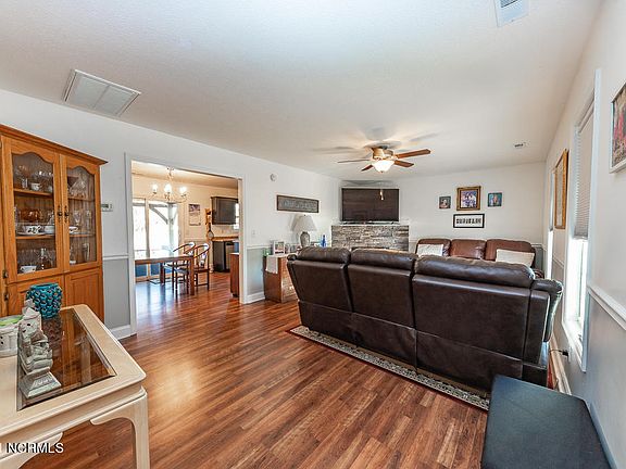 Welcome home as you step inside off your covered front porch into the warm and cozy living room. The kitchen features stainless steel appliances and lots of counter space. Kitchen / dining combo with sliding glass door, makes it easy to entertain family and friends for cookouts on the patio. Enjoy afternoons in the private fenced backyard swimming in the pool or sitting by the fire. Upstairs, enjoy the extra living space, perfect for home office or kid hangout. Large master suite has double sink, soaking tub and walk-in closet. Laundry room is located upstairs where you need it, in between the master and two other bedrooms. This home is located in highly desirable Longleaf Pines Subdivision, walking distance from Creekside Elementary School. The 3 bedroom and 2 1/2 bath home is waiting for your family to call it home! Cherry Point MCAS and Downtown New Bern are only minutes away.