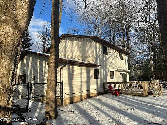 Offer accepted, taking backup offers only ......Move-In ready 3 Bedroom Colonial. Features include Laminate Flooring (no carpeting) * Granite countertop * Tiled Backsplash * Fenced-in back yard * Large Rear Deck with Retractable Awning * Fire Pit * Paved Driveway * Garage * Covered Front Porch complete with brick floor* Brick front on 1st level exterior * Large Windows * sliding Barn Doors on some closets * Private Well & Septic. Located in a Short Term Rental friendly neighborhood. Pocono Mountain School District. Close to shopping, schools and Pocono attractions. Complete with Low Taxes and NO DUES!!!!!!