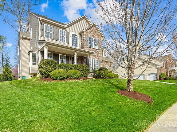 Beautiful stone trimmed home in desirable Amber Leigh perched just above street level on fantastic manicured lot. Charming covered front porch greats you upon arrival. Open floorplan, one owner home, that has been meticulously maintained. Work from home in your private study with French doors and large windows. Large formal dining room is perfect for entertaining. Kitchen features ample cabinet and counter space overlooking the living areas. Beautiful sunroom with lots of windows to enjoy views of your lush tree lined backyard. Second floor features primary bedroom, two additional bedrooms and a bonus room. Third floor is flexible for options of another ensuite bedroom with full bathroom, bonus room, office, theater or gym. Oversized garage with extended side space for yard equipment, bikes, storage & more. Landscape is fantastic & features irrigation. Located near I-77, I-485, I-85 between Charlotte & Lake Norman. Community access to Clarks Creek Greenway with miles of paved pathways.