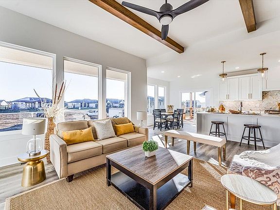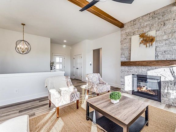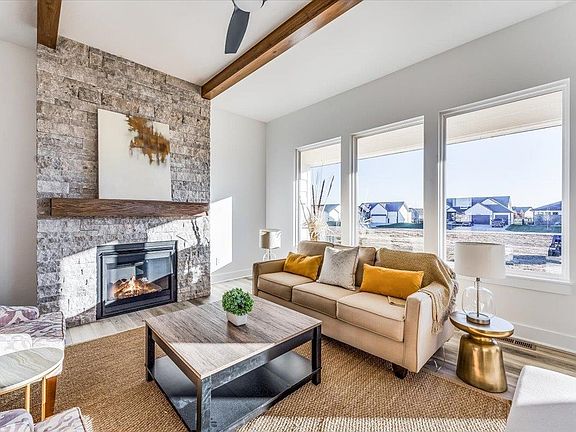 Socora's beautiful Florence plan is designed for comfort, functionality and style while embracing modern living with an open concept, seamlessly connecting the kitchen, dining and living areas. The heart of the house is the kitchen offering ample counter space, a large island and walk in pantry. The focal point of the living room is the beautiful stone fireplace and the exposed beams that stretch across the ceiling. Escape to the spacious primary suite with an ensuite featuring dual sinks, walk-in closet, and fully tiled shower. The laundry room is conveniently connected to the ensuite. Two additional bedrooms and 2nd bath complete the main floor. Descend into the entertainers haven of the spacious, fully finished basement designed for comfort and entertainment. The dramatic wet bar is visually striking and ties the the entire space together. Two additional bedrooms with walk-in closets and a full bath complete the basement. Enjoy the outdoor space with a covered deck off the dining area blending indoor and outdoor living. Sod, sprinklers and well are included in price. Fontana offers a zero-entry pool with splash pad, playground, walking paths and lakes. It's also minutes away from New Market Square for all your shopping and dining needs. A $175 mailbox key fee is collected at closing. General and special taxes are estimated and not guaranteed. Specials are estimated to be about $160.00/month for 20 years. LOWER SPECIALS, LOWER TAXES AND MAIZE SCHOOLS. All information deemed reliable and not guaranteed. OPEN THURS - MON 1:00-5:00 OR ANYTIME BY APPOINTMENT.