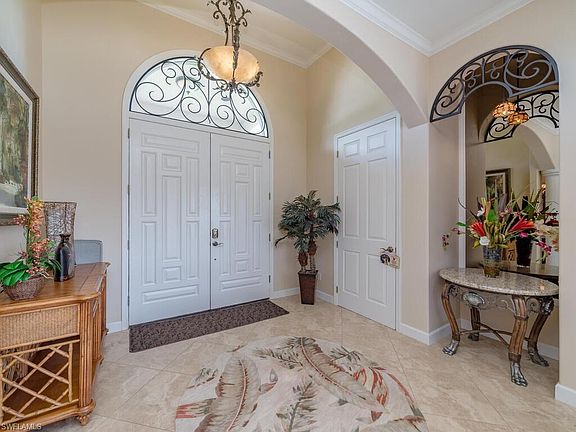 Luxurious sailboat access home on oversized corner lot, overlooking intersecting canals with 265 ft. of waterfront. Every detail was carefully selected and quality crafted. Highlights include a home theater with bi-level seating and 95 in. curved HDTV, pre-wired high end sound throughout, two air conditioning system and a 5 ton mini split ceiling system for cooling and heating with individual control over the temperature in multiple rooms, custom entrance door, crown molding throughout, 10ft. walls, trey ceiling, granite counters and sills, walk-in pantry, porcelan tile, solid maple cabinetry and custom built-ins, designer lighting, custom vanities, two fireplaces, gas heated pebble tech pool, 8 person spa with rock waterfall, outside kitchen with built in grill and stainless steel appliances, 1200 sq. ft. dock with tiki hut, 16,000 lb. lift with canopy, tiled throughout 2 car garage with custom cabinets. Just replaced the left side of the Seawall! It's hard to list all the indoor and outdoor features of this stunning home. Schedule a tour today!