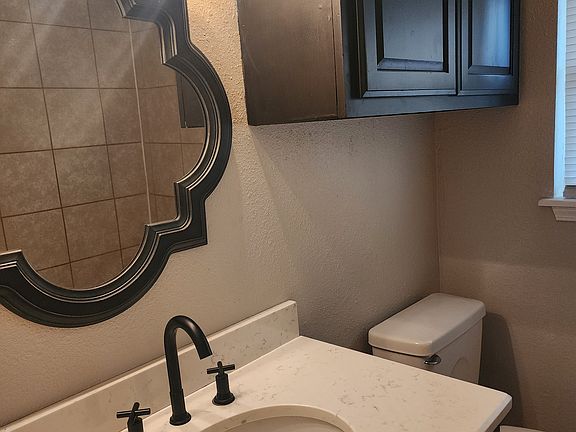 Newly renovated home with central heat & air, granite countertops in kitchen & new flooring & windows throughout. New vanities in both bathrooms with beautiful new light fixtures & extra storage. French doors out to patio and fenced backyard. Kitchen includes a dishwasher, microwave and electric stove. 2 car garage with washer and dryer hookups just outside the door from the house & door to backyard. Outside renovation scheduled for Spring 2026.