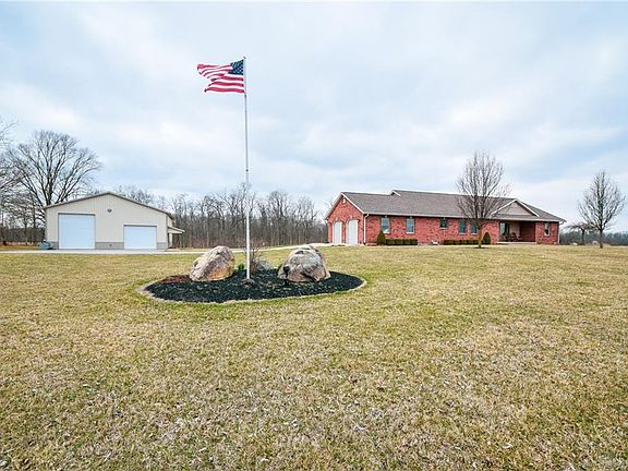 Gorgeous custom brick home with 2292 sq. ft. 3 large bedrooms, 3 full baths, split bedroom concept. Master bedroom has walk in closets 16x11, master bath has double sinks and large walk in shower, jetted tub. Kitchen is a cooks dream with island bar, stainless steel appliances and custom cabinetry and open to the great room, two walk in pantries. Large mud room with storage, utility room with sink and cabinets. Great room has cathedral ceilings, gas fireplace, 3 season room overlooking the lovely grounds, deck 34x10, walkout basement with pool table, full bath, hot tub room 20x15, storm room, shop could be 4th bedroom, kitchenette and great room, storage under stairs. Pole barn 48x42. Concrete floor, 2 overhead doors 14'x10', 22 acres 10 is wooded. Geothermal heat and central air, stand by gas generator. Attached two car garage. Storm room 18x5, mud room is 9x9, hot tub 20x15. 3 season room 14x10.