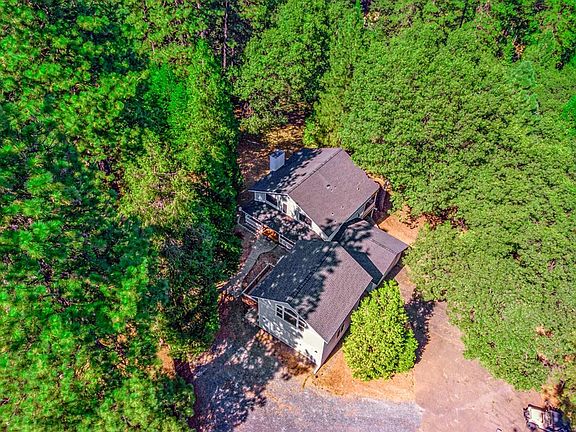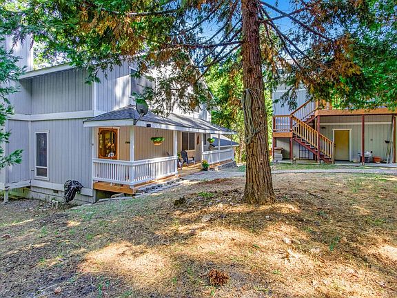 Soaring knotty pine ceilings, custom milled flooring and beautiful river rock greet you upon entering this well maintained 3 bedroom 2.5 bath. The warm and inviting open concept living space presents a private view from each window. Both stories offer access to 3 covered redwood decks for outdoor enjoyment. The 2 acres includes an attached 2 car garage as well as a detached 2 story garage/shop with approximately 400 square feet upstairs for storage or office and plumbed for future development. Venus Way is only one mile from shopping and Highway 193.