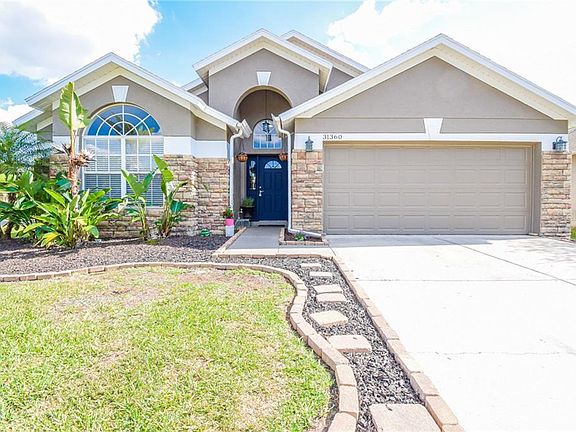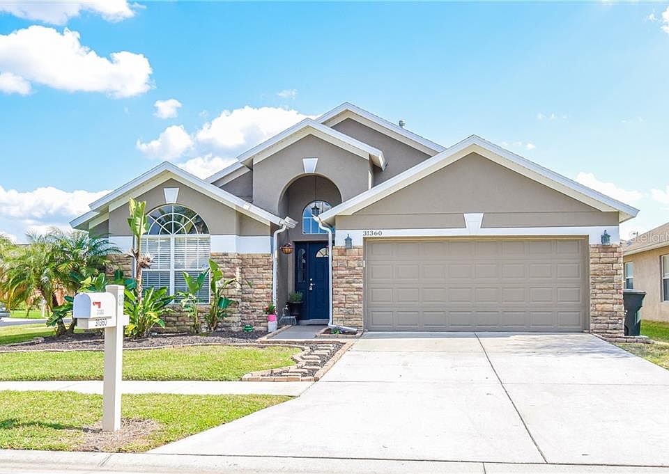 This beautiful 3-bedroom 2-bath home is in the Heatherstone sub-division within the Meadow Pointe Community in Wesley Chapel. This home has been freshly painted both inside and out. It is in a gated community and features a fenced yard, situated on a corner lot with a 2-car garage. The front of this home displays a lovely stone entrance. Upon entering the home, you are greeted with high ceiling and beautiful flooring that makes the home warm and welcoming. Gorgeous French doors open into a spacious den/office. The kitchen features new Samsung appliances and tile wood plank floors. Dark wood cabinets, beautiful granite countertop, plenty of counter space including an island with seating add the final touches to this newly remodeled kitchen. In addition, the kitchen overlooks the family room area that is open and roomy! Hot water, dryer and stove are all-natural gas. Each of the bedrooms are a nice size with plenty of room to move around. The master bedroom is spacious with walk-in closets followed by a master bathroom that features walk-in shower, garden tub and his and her vanities. The back yard is perfect for entertaining with covered patio that is insulated to help with the Florida sun and can easily be screened in. Saltwater pool (2018) with natural gas to heat both pool and spa that is surrounded by gorgeous cobble stone deck. The yard is low maintenance allowing time to truly enjoy your home. Close to I-75, I-275, schools, great shopping, malls and dining! Ready to make a move? Now's the time! Schedule a tour today!!!!