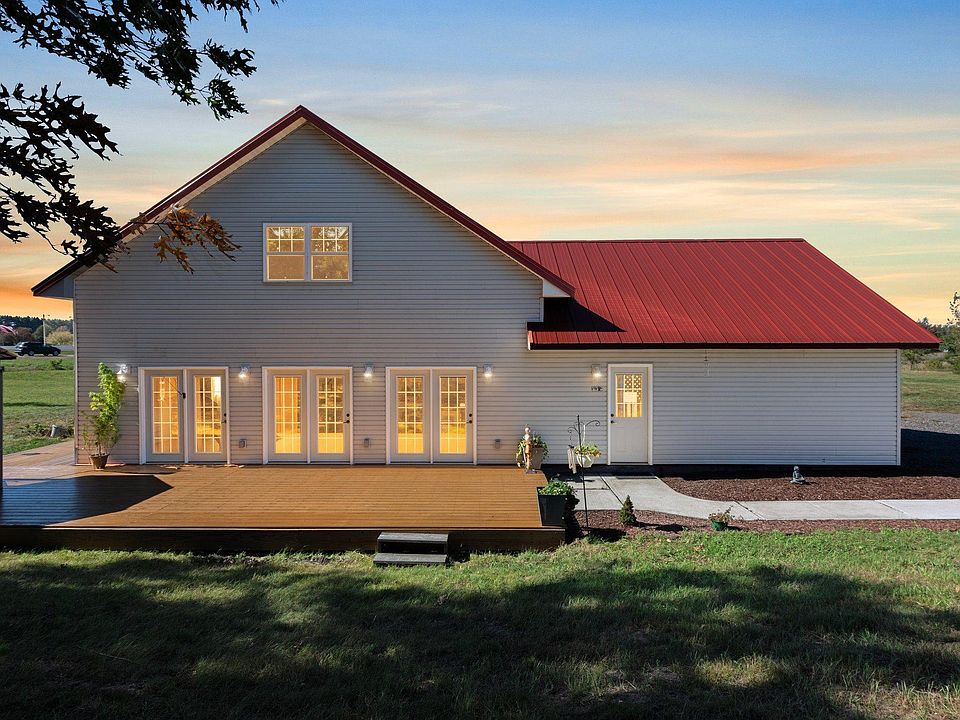 on the main floor that includes vaulted ceilings, a primary suite, a second bedroom, and full bath. This property also includes an
