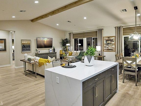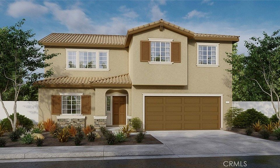 NEW CONSTRUCTION! This 2,537-sf home with a Tuscan façade has 5 bedrooms and 3 bathrooms, a DOWNSTAIRS primary bedroom with ensuite bathroom, laundry room off the kitchen, and a secondary downstairs bed and bath. There is a LARGE BONUS room upstairs. The Island kitchen with breakfast bar has QUARTZ counters, and built-in stainless-steel appliances. The interior comes complete with on trend Smoke colored shaker-style cabinetry, lots of included recessed lighting and DESIGNER flooring throughout! There is also a direct-access 2-car garage PRE-PLUMBED for an electric car! This truly modern home has all the SmartHome features you would expect and, is FULLY LANDSCAPED AND IRRIGATED in the front yard. This community is situated close to park and freeway access. We anticipate a March 2024 move-in and we can't wait to Welcome you Home!!