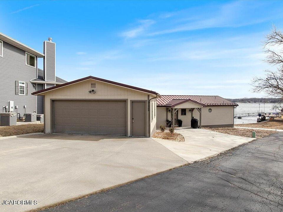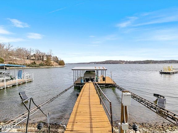 Step into luxury with this immaculate one of a kind custom waterfront property, perfect for full time residency or weekend getaways. Breathtaking panoramic views of the main channel can be seen from the many floor to ceiling windows. Indulge in the ultimate culinary experience in the sprawling lakefront custom kitchen. Designed for hosting and entertaining the kitchen boasts an 8-foot island, custom Calcutta quartz countertops, designer backsplash and an abundance of storage. The hand-hewn hardwood flooring includes a custom compass inlay and flows throughout the main level living adding warmth and elegance to the spaces. Extend your entertainment outside and experience sunrises and unparalleled convenience and comfort from the large covered deck. Maintenance free landscaping ensures your weekends are spent enjoying the lake, not maintaining the property. Access to the dock is step free, with a golf cart path leading the way. The deep water dock is perfect for all your watercraft needs. The two car garage comes with built-in cabinets and additional concrete parking. Recent upgrades include a new retaining seawall, seawall lights, and fresh exterior paint ensuring the property maintains in pristine condition for years to come.
