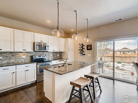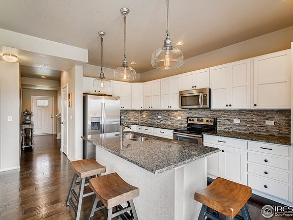 Stunning home in Enchantment Ridge! Boasting upgraded finishes throughout the home and a premium lot. The views are amazing of the mountains. Easily entertain year round with the open concept kitchen, living and dining area, or head to the grand outdoor patio and relax by the fire pit on the large stamped concrete patio. The xeriscaped back yard has amazing views of the mountains. With the elevation of the lot and no neighbors behind, this home has privacy that is hard to find in a newer neighborhood. Enjoy everything West Loveland has to offer with access to the Foothills and nearby trails and parks. This home has many tastefully updates such as plantations shutters and many other neat features you will find to make this a very comfortable place to call home.The loft in this home would easily be converted into a third bedroom.