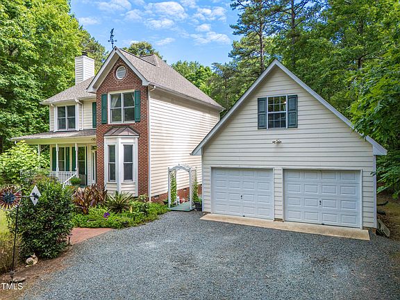 Private/Secluded Home on 2 plus acres with 3 Bedrooms, 2.5 Baths, an oversized detached garage with walk-up storage room or Man Cave all just a few miles from Carrboro/Chapel Hill, UNC Campus and Hospital. On the main floor, ithe light filled home has Hardwood Floors, an updated Chefs Kitchen with Solid Surface Counters, Tile Backsplash, Maple Cabinets, Butcherblock Island and Pantry. Off the Kitchen is a light filled Breakfast Room. There's a separate Dining Room, as well. The Living Room offers a large Fireplace with a detailed mantle. The bold downstairs Crown Molding flows to the second floor Master with a Trey Ceiling, Large WI Closet, Sitting Space and Master Bath with a double Vanity and separate Shower and Tub. There are 2 more bedrooms and a second full Bath on the second floor. The large back deck allows for outside dining and privacy overlooking the Fig Trees and large Garden area. Off the deck is a stone Patio with a Fire Pit. There is High Speed Internet. Don't miss this Private/Secluded home with Orange County Schools and low taxes.