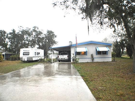 60 FOOT DOUBLE-WIDE MOBILE ON YOUR OWN HALF ACRE OF LAND! Very well-maintained double-wide, 2 bedrooms, 2 baths, extra large family room with built-in entertainment center, large screened lanai off the carport. Nice size kitchen opens to dining area. Large master bedroom with bigger than average closets. Double vanity sink in master bath. Guest bath "Jack and Jill" style that opens to guest bedroom and in-house utility. Property has 2 wells. Move-in condition.