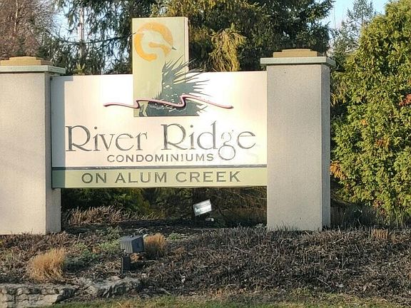 Beautiful 1st floor condo in the desirable River Ridge Condominiums. This condo features 2 bedrooms and 2 full bathrooms, vaulted ceiling in the living room, walk in closet in the owner's suite. Featuring an open concept living layout with eating area and kitchen bar. Covered patio features large storage closet and just steps to green space, woods, and Alum Creek walking and biking trail. Until comes with one car garage. Location close to clubhouse including Fitness Facility, Meeting Room, kitchenette and Pool. Condo entrance is secure with intercom to buzz into the common area. Hot water heater new in 2021 and Master bath remodel in 2020.