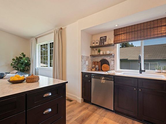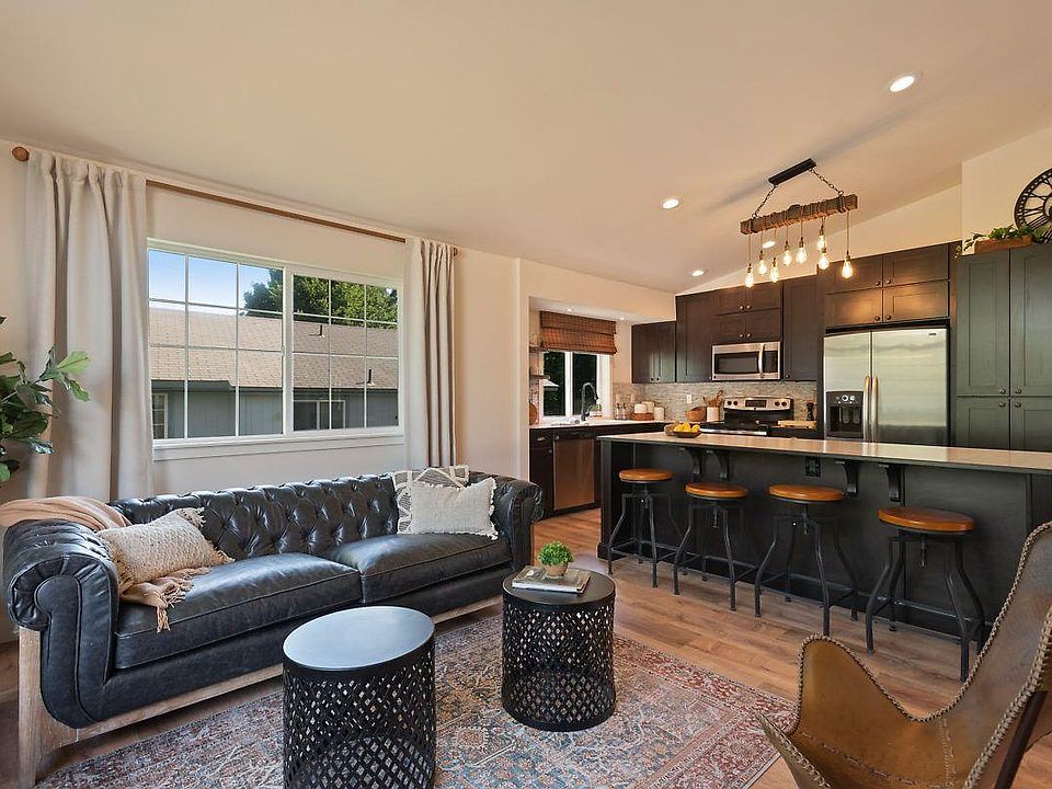 Gorgeous, Like New, Light-filled Contemporary Home centrally located in quiet CDA neighborhood with mature landscaping, non-thru streets, and views of Canfield Mt from the living room windows. Complete remodel finished in 2019 includes new roof; new furnace; new hot water heater; newly painted exterior & interior; new custom stained driveway; new exterior stonework; all new, easy-living flooring thru-out; all new light fixtures, many recessed, with Decora switch/outlet trim thru-out; all new espresso single-panel interior doors, w/bronze hardware and new custom detailed casings, base, and trim thru-out.