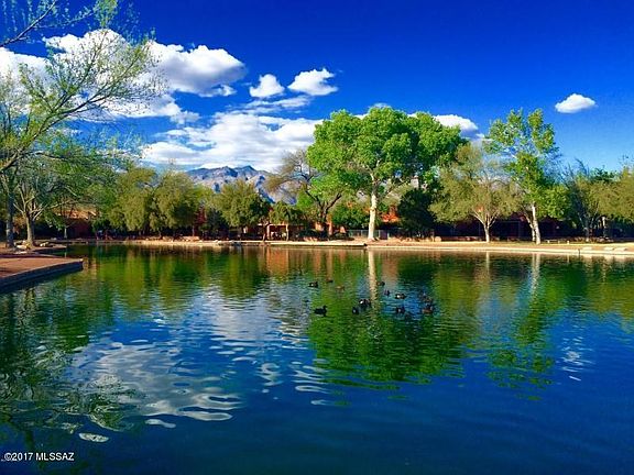 **ON THE LAKE** Immaculate 2BR & den/2BA Contemporary in Historic Hill Farm LAKE Community w/private 3 acre LAKE, GRASS, TALL TREES that change colors in the fall, rare birds & ducks, walking paths & next to the RIVERWALK LOOP. Close to TMC, Ft Lowell Park, Major Shops & mins to UA. Interior has updated kitchen w/newer white GE Profile appliances, soaring ceilings, spacious Greatroom w/stone fireplace, walls of windows, concrete floors. Spacious Master suite has executive height counters, double walk-in closets, garden tub & walk-in shower. Incredible backyard w/covered patio, mature oak & mimosa trees. New roof Oct 2017. Community has many SOCIAL EVENTS, 6 ACRE PARK, SUITES in Joesler CLUBHOUSE for guests/parties, pool, spa & playground. Another Diamond in the Desert!