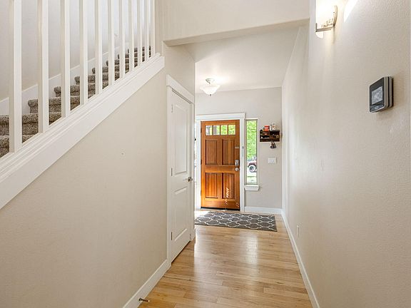 Well maintained NE Bend home on a corner lot with plentiful space. Downstairs you will find an open floor plan living area with lots of light from the south facing windows. A generous entry, half bath, gas fireplace, walk-in pantry, stainless appliances, a breakfast bar, and dedicated eating area make daily life enjoyable. Through the sliding glass doors you will find a perfect yard for warm evenings shaded by the surrounding trees. Head upstairs to find your sleeping areas, with a well thought out floor plan. Wide hallways, generous bedrooms, the second full bath, and a dedicated laundry room including utility sink and storage are down one hall. The primary suite with vaulted ceilings including a fan, plentiful natural light and a beautiful soaking tub is down the other short hall. Tile countertops, hardwood flooring, newly installed carpeting, and central air/heating; This home is ready for you!