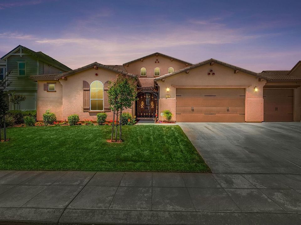 This move-in ready Benchmark open concept home sports 4 bedrooms, 3.5 bathrooms and a bonus office. It also has a separate upstairs loft for game night and large gatherings. Amenities inside and out include designer paint, custom kitchen, crown molding and granite countertops. Nestled on a large lot, you will enjoy the private path that runs through the neighborhood. Don't forget to look at the two parks and award winning Clovis school within a 5 minute walk as well. Paid for solar, Tesla car charging port, and much more!