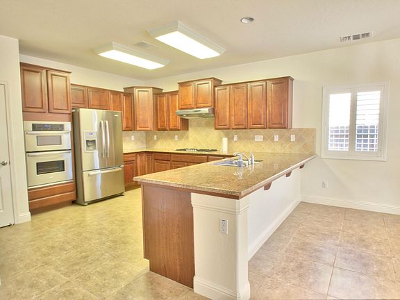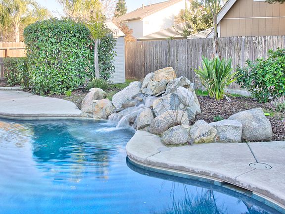 Come see this beautifully upgraded home located in NW Visalia's Shannon Ranch. The home is in move-in condition and comes complete with a pool (beautiful rock waterfall) and spa. The large kitchen has upgraded stainless appliance, including 5 burner range top, beautiful cabinets with pullouts and lazy Susan, nice size pantry, granite counters with tile back splash. Laundry located just off the kitchen has extra storage and a sink/vanity. 18'' floor tile and plantation shutters throughout with carpet in the living room and bedrooms all w/extra wide base boards. The bedrooms, living room, bonus room and computer/game room wired w/cable and internet access. Master bedroom offers access to the backyard through French doors and the bath features separate soaking tub, tile shower, dual sinks with granite counters and walk in closet. Stamped concrete around the pool, large coved patio, artificial turf front & back plus in-wall pest control tubes. Finished garage w/extra insulation!
