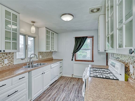 Comfort meets charm in this meticulously maintained RANCH. 1,142 sq. ft., this 3-bedroom, 1-bathroom gem, sits on nearly half an acre of beautifully landscaped grounds. Sun-filled eat-in kitchen, w/ glass-front cabinetry, soft-close drawers & a large pantry w/ convenient pull-out shelves. Stone & glass tile backsplash adds an elegant touch. Perfect for hosting or casual family meals, this kitchen & living room combo is truly the heart of the home. Versatile third bedroom is ideal for guests or a home office, w/ sliding door leading directly to your tranquil backyard. Bathroom has newer vanity, tile wall and tub w/tile & linen closet. Large utility closet, for extra storage. Updates include Tear-off roof ‘15, Siding & Windows ’14, Radon System installed in ‘18. Sump pump ‘24, New Septic System ’19, Hot Water Tank ’21, Washer & Dryer ’20, New Kitchen & Bath Flooring '24, and Gutters cleaned ‘24. Additional workspace included in the 2-car detached garage (exterior painted in ‘24)Set on a quiet street with serene surroundings, this property offers a perfect blend of convenience and nature, ideal for those seeking both space and comfort. Delayed Negotiations Due Tues 10/22 @ 10AM