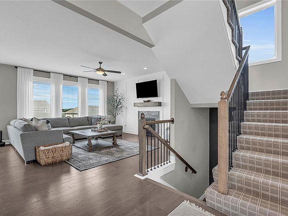 Fabulous and lightly lived in 2 story home in De Soto. This wonderful home features a spacious living room, beautiful kitchen with painted cabinets, lots of cabinet space and pantry, quartz countertops, kitchen island and stainless steal appliances. Beautiful wood floors throughout the entire main level. Primary suite offers a spacious bedroom and bathroom that provides beautifully tiled floors and shower, double vanity and a large walk in closet. Additional 3 secondary bedrooms and laundry are on the same level. Finished walk out basement provides a nice entertaining space and a full bathroom along with some remaining storage space. Backyard offers a deck, patio and fenced in lot. Hurry this one will not last long!!!