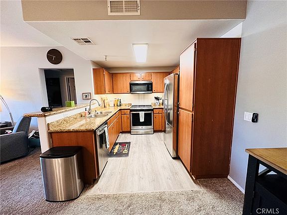 Welcome to Temecula Creek Village in South Temecula! This charming second-floor condo offers 1 bedroom, 1 bathroom, a detached 1-car garage, walk-in closet with closet organizer, granite countertops in the kitchen, and luxury laminate plank flooring and carpet installed in 2021. It is located on the interior part of the community which avoids the busy road noise of Temecula Parkway. Enjoy the stunning view of the Pechanga fireworks from the balcony on the 4th of July. The community amenities include a pool, hot tub, gym, racquetball court, sauna, and a greenbelt walking trail. With low maintenance and affordable utilities, this condo provides a convenient and hassle-free lifestyle. Experience the best of South Temecula living, just minutes away from wine country.