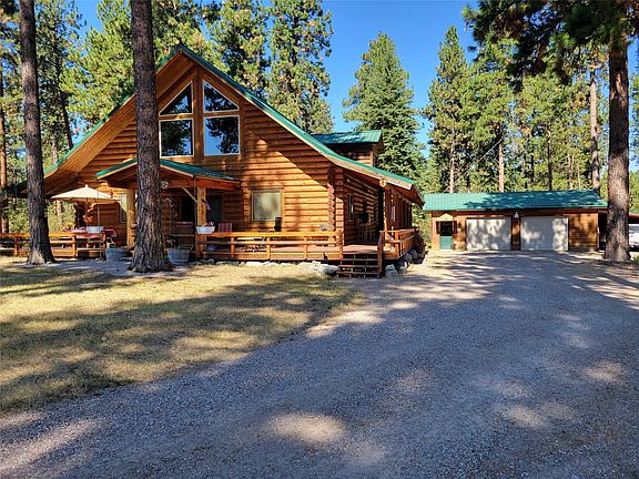 12" Native Montana Log Construction! These logs over the years have been meticulously maintained, oiled & chinked! Open concept. Main floor has 2 bedrooms, full bath, laundry, great room, hickory kitchen, breakfast area, propane fireplace. Second floor is 3/4 loft, with second living area,1 bedroom & full bath. Natural light big dormers and windows. Open log rails. Interior walls are log. 3 sided covered deck, flower beds, easy care natural landscape. Electric heat. Underground power, 2500 gal septic tank and community water with good pressure. 100 yr old pines provide lots of shade, much of the 2.65 acres is parked out, circular driveway, RV pad with power. Implement shed/carport off insulated double garage, which also has a heated office. Comfortable living space and floor plan. Big new lawn tractor, mower, and plow negotiable. 5 Mins to Polson and Flathead lake! 2 hrs to Glacier Park! Seller relocating to a much smaller home and is negotiable on furniture and the many animal mounts he has acquired over the years. Please keep this in mind if anything catches your eye while previewing.