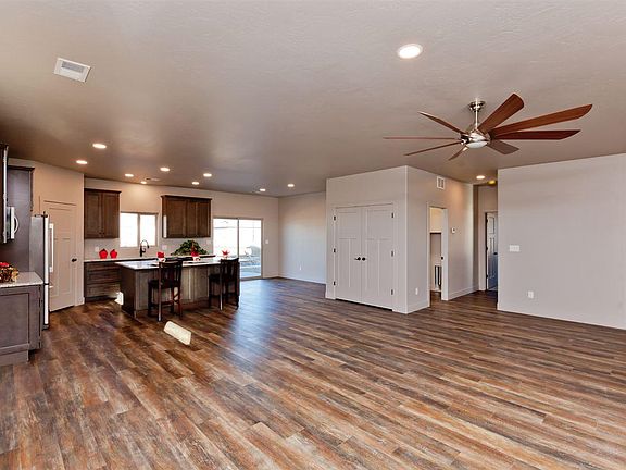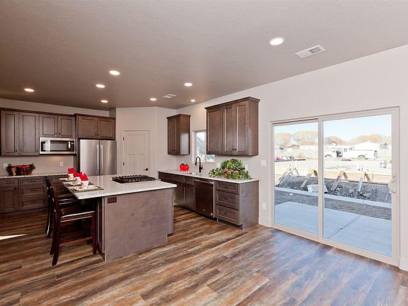 Another gorgeous new construction by RG 18Rd LLC. The open concept floor plan features 24x24 living room with engineered vinyl plank flooring that opens to kitchen and dining area. The kitchen provides custom cabinets and a huge island with solid granite countertops and 2 pantries. Stainless steel appliances including refrigerator. Blown insulation, upgraded light fixtures, covered porch, and RV parking. Mt. Garfield and Grand Mesa views. Vinyl Fencing will be included.