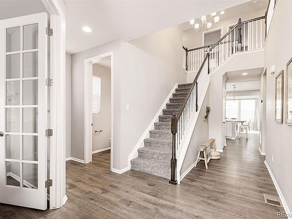 *PLEASE NOTE: Lender is offering 1% interest rate buydown for the first year at lender's expense -- inquire with listing agent!* Newer build in a beautiful community of Castle Rock! This open-concept, spacious 3-bed/3-bath home also has a partially finished basement with potential for even more livable space in a total of 3,716 square feet. Stunning granite countertops in the kitchen, fresh natural light, and a neutral color palette grace this home with comfortable yet inspiring ambiance. A large primary bedroom and well-cared for back yard contribute to the complete functionality of the home. An office on the main level makes working from home easy, while laundry on the top level where all of the three finished bedrooms are allows for seamless practicality. All new flooring on the main level, new oven & stove with air fryer, new dishwasher, new sod in back yard, newly-built deck, new stone patio, oversized 2-car garage, large pantry. Enjoy downtown Castle Rock in less than a 10-minute drive as well as paths in the neighborhood itself. Quick access to I-25, a roughly 30-minute drive to DTC, and about 45-minute drive to downtown Denver. Come see for yourself how convenient and livable this gorgeous home is in desirable Crystal Valley Ranch!