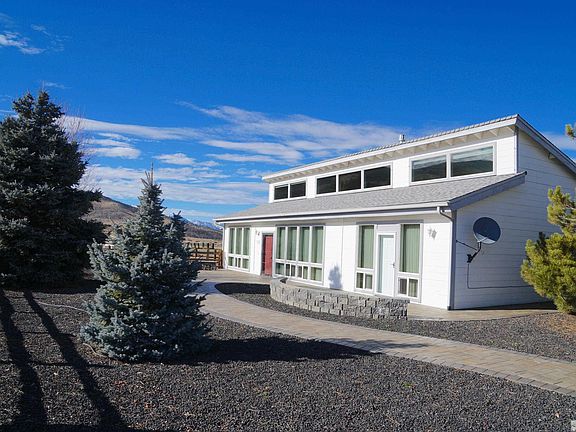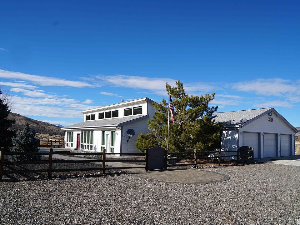 Beautiful Spring Valley home set on 4.3 acres with 360 degree views of the Sierra and Pinenut Mountains - Horses Welcome. Features split floor plan, gorgeous kitchen, knotty pine custom cabinets and interior doors throughout, passive solar design, gas fireplace. Spacious master bedroom with walk in closet, master bath includes soaker tub and separate shower. Huge pantry, third bedroom designed for guests/crafts with 190 sf loft and Murphy bed., Low maintenance landscaping complete with pine trees, large patios in front and back of home, oversized 3 car garage with cabinets throughout and sink. Tuff shed, and kitchen refrigerator included. Bring your ATV's, easy access to trails from your driveway.