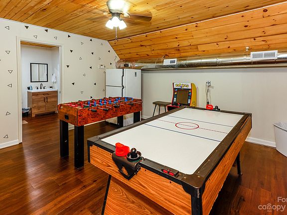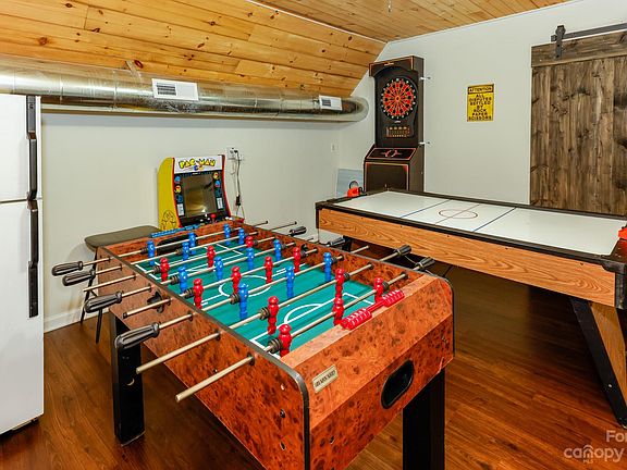 Newly updated, "Stompin Grounds" is a very private cabin nestled in the center of an 11-acre heavily-wooded estate and new to VRBO in 2023. Cabin features open kitchen with island topped by a natural wood slab counter. Cabin has updated lighting and amenities. Recreation room includes Foosball, air hockey and Pac-Man arcade machine.
