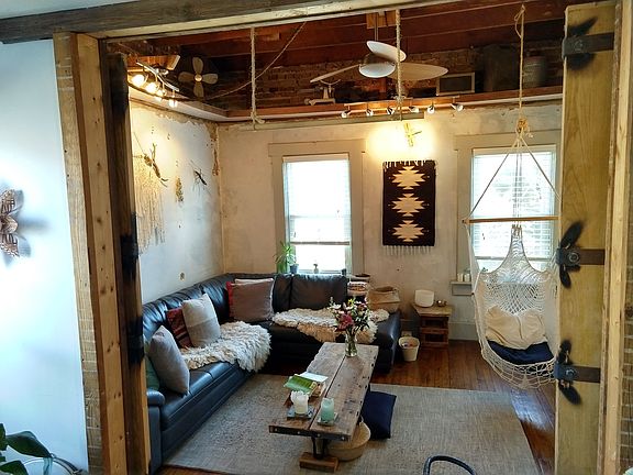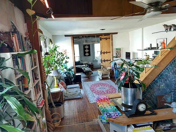 Unique opportunity in Hampden--- craftsman's/ entrepreneur's bohemian dream! Light-filled, end-of-group unit. Front room is zoned commercial for an art gallery/ gift shop, or enjoy it all as a 2 BR, 1BA residence. So many possibilities! Walk-in closet, concrete countertops, and garage.