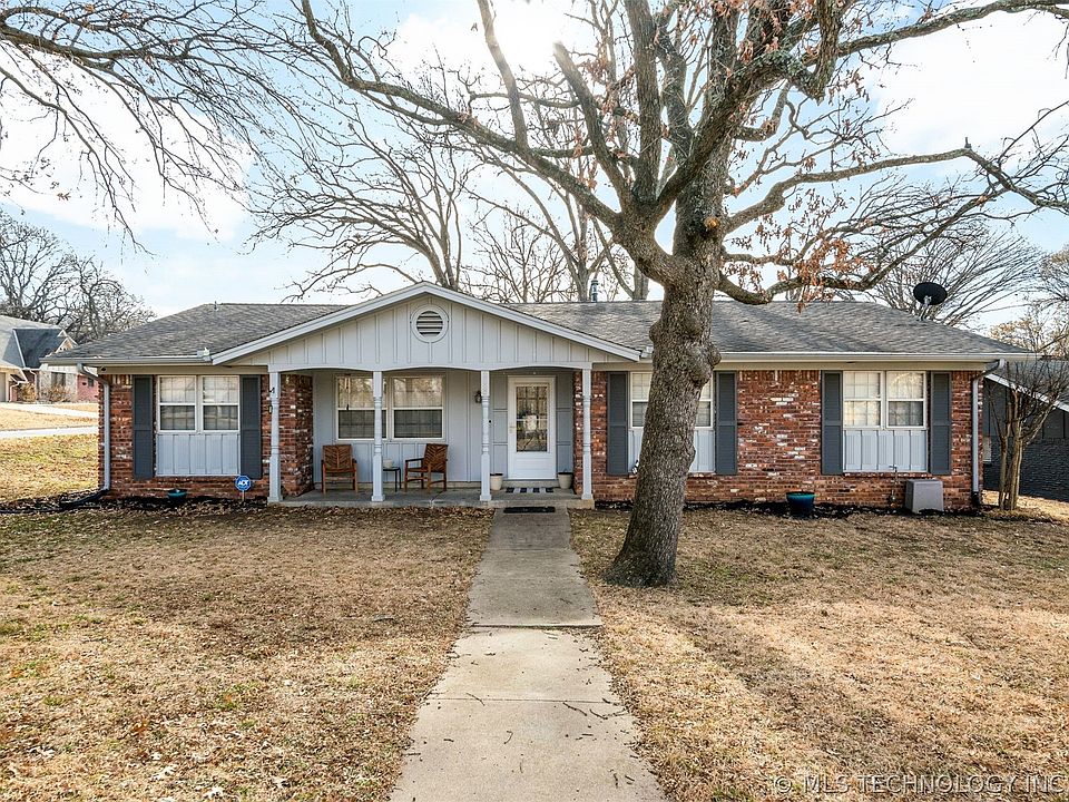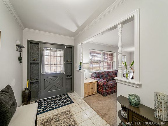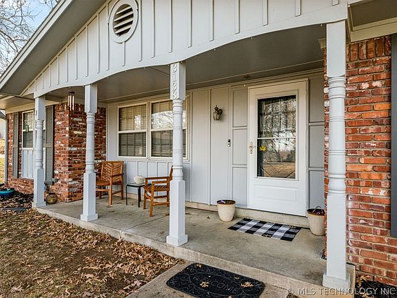 Super cute Ranch style home sitting on large corner lot in Jenks schools. Updates include interior and exterior paint. and in 2019, all new light fixtures, French doors, garage doors, HVAC, cooktop, carpet, wood flooring in hallway, privacy fence & toilets. There are 2 large living, 2 dining & white kitchen w/pantry. Master offers private bath w/updated shower & 2 walk-in closets. Beautiful corner lot, mature trees, covered front porch, patio & side entry 2 car garage features bump out for work area & pulldown attic. You won't be disappointed!