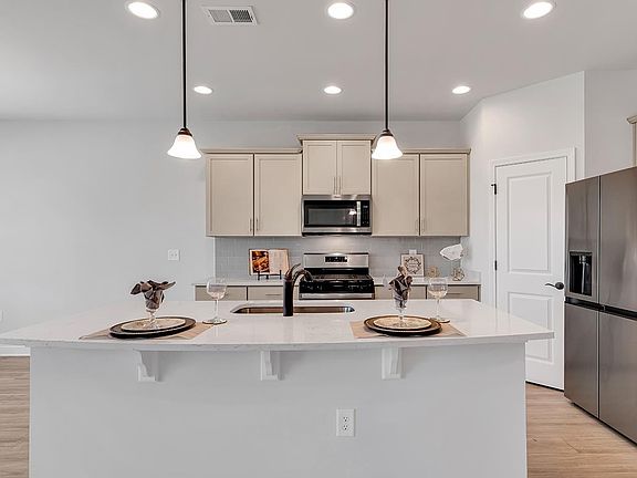 - Features: Breakfast Bar, Kitchen Island, Pantry, Stainless Steel Appliances, Solid Surface Counters