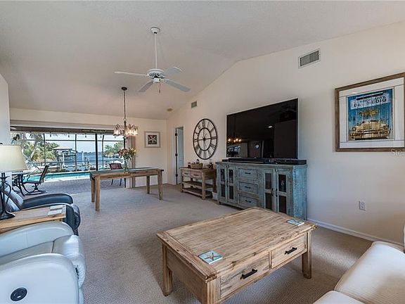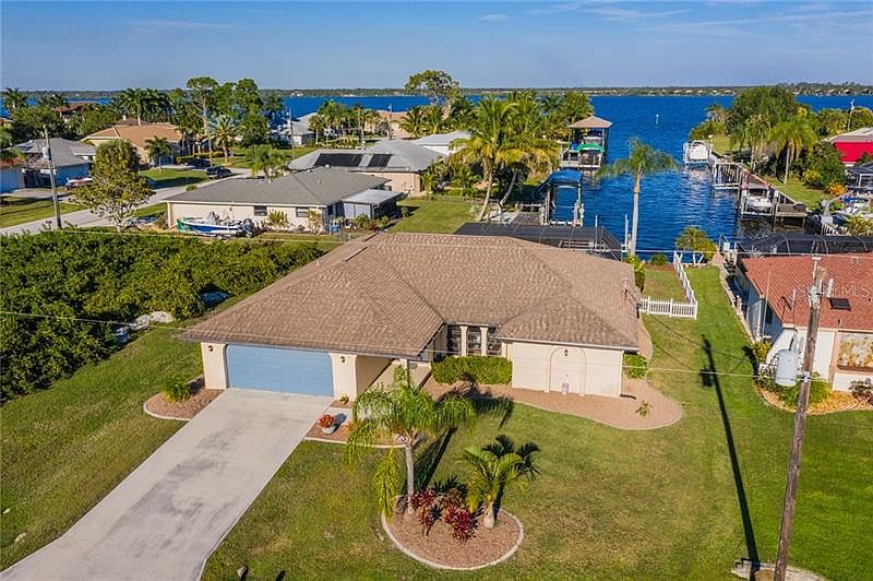 VIRTUAL Facetime showing also available. WOW...$20,000 Reduction!! A hidden gem on the Myakka River, and just minutes from Charlotte Harbor!!!! You will LOVE the view!!! With vaulted ceilings throughout the main living area, this open, split bedroom floorplan features collapsible sliders from the living room, dinette, master, and spare bedroom with access to the large covered lanai and views of the sparkling pool and canal. A recently updated kitchen offers beautiful wood cabinetry, granite counters, and stainless steel appliances. Enjoy your pool and long canal view from the breakfast bar and newly added paver sitting area by the water. The master suite includes 2 nice walk-in closets, an updated bathroom with double vanity sinks, and a dual-head shower. This split floor plan home gives you two guest bedrooms and an updated guest bathroom. The brick paver lanai offers a newly screened pool cage and resurfaced pebble tech heated pool with a new pool pump and filter (2018). This home was just replumbed and has a new hot water heater (2019). This BOATER'S PARADISE includes a concrete seawall, dock, and 4,000 lb. boat lift with a new motor (2018)and plenty of room for boat or RV parking. This quiet and beautifully maintained neighborhood is not far from beaches and shopping. Come check out this slice of Florida heaven!