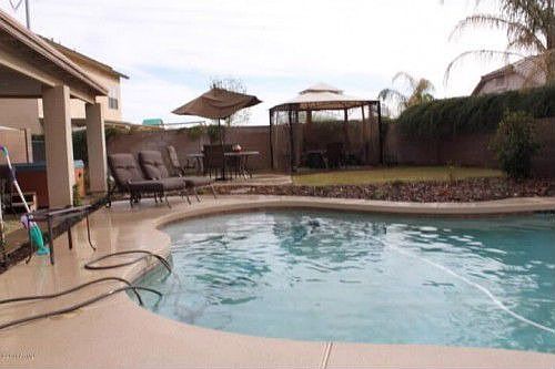 4+Den/5th Bdrm (has closet), OVERSIZED lot. Designer paint, upgraded fixtures/faucets, wood plank floors upstairs and downstairs, beautiful circular staircase with customized upgrades, large wood blinds throughout, S/S appliance pkg, finished metal screen doors, sparkling pool with seating table and large first step, above ground spa. All new fans and lighting. Recently remodeled all bathrooms. 12 KW solar panels. Extended driveway w/ RV gate. Pride of ownership.