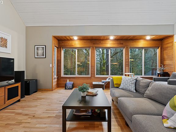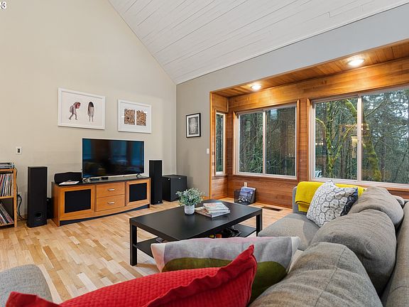 Northwest Contemporary overlooking Hoyt Arboretum on Wildwood Trail. Vaulted ceilings and walls of windows capture the beauty of the outdoors. 3 level decks are perfect for entertaining. Master suite w/huge walking closet, spa bathroom and private deck. Lower level bonus room w/ fireplace, bedroom & bath - private entrance would make great separate living qtrs. Gleaming heated hardwoods throughout, induction range w/convection oven. Abundance of storage. Minutes from the city & Washington Park.