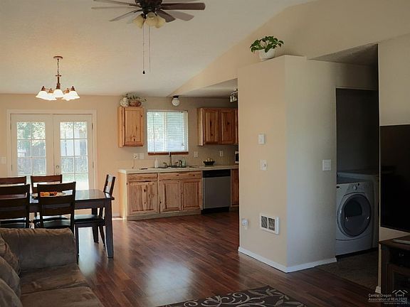 Great single level home close to Schools and Parks. Fresh interior and exterior paint, laminate floors in Living Room and Kitchen and French Doors to the backyard. Tiled kitchen countertops, Stainless Steel appliances and beautiful cabinets in kitchen. Bathrooms have solid countertops and tiled floors. Kitchen and baths have been updated. Backyard has apple and plum trees, a custom he/she shed. With a little imagination, this backyard could be amazing! Come make this home yours! Great for first time home buyers.