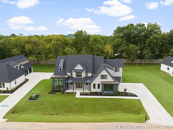 New Construction located on a half acre lot in StoneCreek, a NEW private GATED neighborhood in Jenks! 4 bed, 3.5 baths, large utility room, huge pantry, large gameroom. Master and guest down with private baths. Vaulted open living area, oversized nook with dry bar. Expansive outdoor patio that backs up to wood area with privacy fence. Tiled to ceiling fireplace with metal mantle. 24 x 48 tile throughout master bath, closet and utility. 7 inch engineered white oak throughout downstairs. Quartz counters and other high end finishes! Agent related to seller.