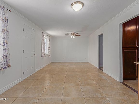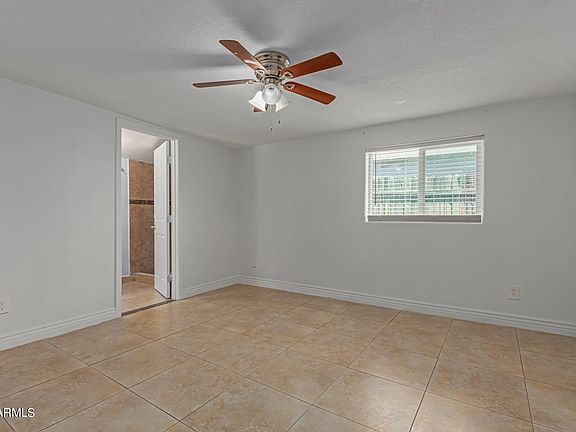 Charming single-level home in a desirable Phoenix location! A fully fenced property with 3 beds, 2 baths, easy-care front yard, front porch, and a gated parking space. Be greeted by a formal living & dining room, perfect for receiving guests! The kitchen has, granite counters, a mosaic tile backsplash, and cabinetry w/crown molding. Designer paint creates an inviting ambiance, enhanced by layered crown molding and tile flooring in all the right places. Good sized bedrooms! Primary bedroom boasts its own bathroom for added comfort. The spacious backyard offers an open patio a With your creative ideas, you can make it an ideal outdoor oasis. Conveniently close to schools, shopping, dining options, and freeways. Fresh paint through out the house, New carpet in 1 of the room