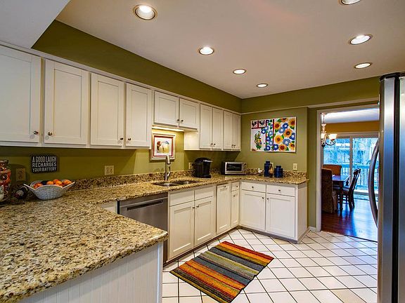 Updated, Unique, 3 level end unit condo! Fantastic location overlooking wooded ravine w stream. Enjoy the private views: from the open floor plan,serene deck or paver patio! Large living/dining rm w newer laminate flooring, new lighting features slider to the treed deck views. Chefs kitchen: abundant granite counter space,abundant white cabinetry pantry,new SS appls, eat in area & access to private front patio area for easy al fresco dining! 1st flr laundry! 3 spacious BR up. Newly updated en suite owner bath,walk in closet, new carpet. 2nd full bath w quartz vanity. Walkout LL: XL family room area,office space, wet bar, built ins, possible 4 BR, half bath. Under stair bonus storage area. Newer windows. 1 car garage w shelving. Enjoy the community pool, access to park, trails.